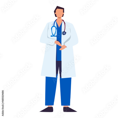 Healthcare Professional In White Lab Coat With Stethoscope On A Plain Background