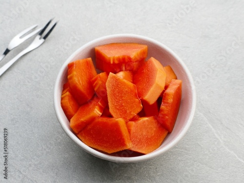 Healthy and fresh cut papaya fruit or sliced ​​papaya, served in a bowl