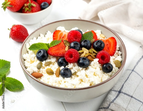 Healthy breakfast bowl with cottage cheese and fresh berries