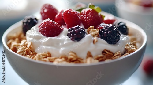 Healthy breakfast cereal with berries and yogurt : Generative AI