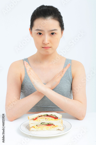 people, person, asian, korean, fitness, oriental, woman, 1, body, beauty, diet, sandwich, refusal