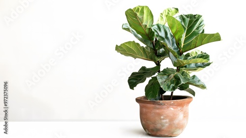 fiddle, plant, healthy, fig, rustic, clay, pot, isolated, white, background, clean, green, foliage, indoor, natural, decoration, houseplant, leaf, home, minimal, environment, potted, texture, botany, nature, gardening, modern, style, vibrant, serene, simple, design, elegant, naturalistic, art, contemporary, aesthetic, lush, growth, composition, object, scene, appearance, classic, visual
