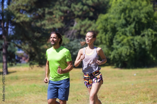 couple, park, male, jogging, young, female, summer, lifestyle, sport, nature, running, fitness, woman, man, training, people, runner, recreation, smiling, outdoors, caucasian, happy, healthy, exercise, together, friends, sporty, practicing, activewear, effort, recreational