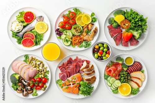 food, meal, plate, healthy, diet, nourishment, vegetable, fruit, meat, fish, salad, protein, fresh, cookery, delicious, dinner, lunch, breakfast, epicure, tasty, colourful, organic, vitamin, mineral, balance, wellness, lifestyle, eating, nourishment, white, produce