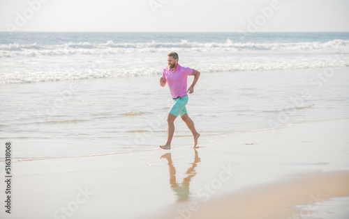 healthy man running on beach. energetic summer. runner feel freedom. enjoying the morning.