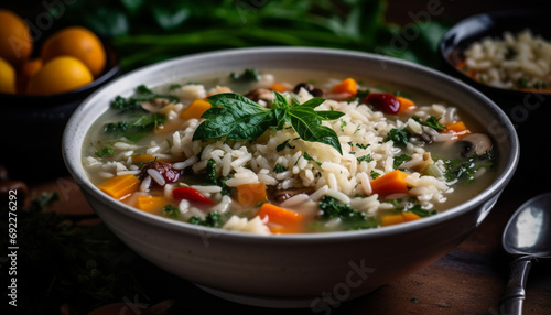 Healthy meal of vegetarian risotto with fresh vegetables and herbs generative AI