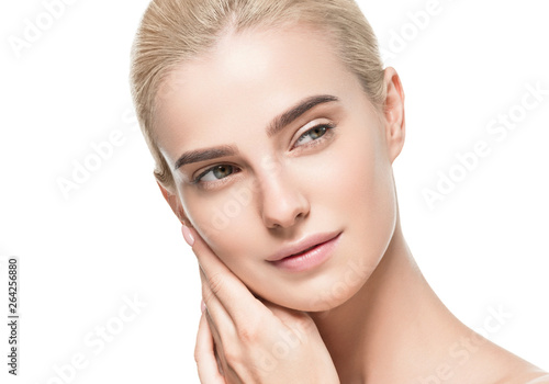 Healthy skin woman face blonde natural makeup womanbeauty skin care isolated on white