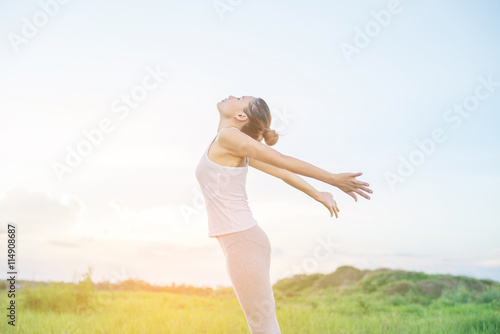 woman, health, freedom, day, arm, open, openness, hand, new, wide, sun, joyful, joy, light, stretching, adult, spring, bright, spreading, girl, sky, red, summer, young, greeting, happiness, sunny, outstretched, active, morning, 1, excitement, energy, excited, free time, energetic, standing, inspired, celebrate, teenage, inspiration, carefree, raised, gesticulate, happy, summer