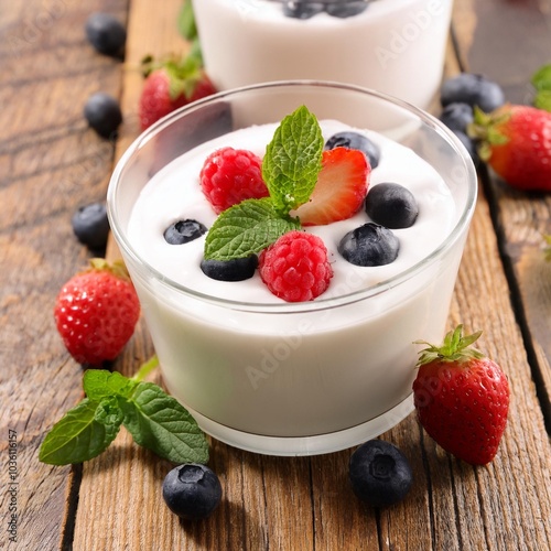 healthy yogurt with berry and mint