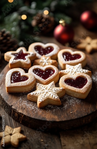 heart-shaped, star-shaped, wooden board, rustic, festive, dessert, homemade, bakery, traditional, sugar, pastry, jam, sweet, cookie, holiday, baking, decoration, christmas, winter, holiday season, cosy, confectionery, vintage, decorative, seasonal, treat, sweet