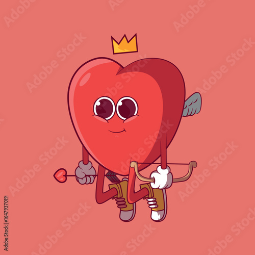 Heart Character Floating with Bow and Arrow vector illustration. Mascot, brand design concept.