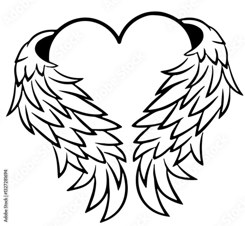Heart formed by two wings, symbolizing love, freedom, and connection, with layered feathers creating a detailed and graceful shape.