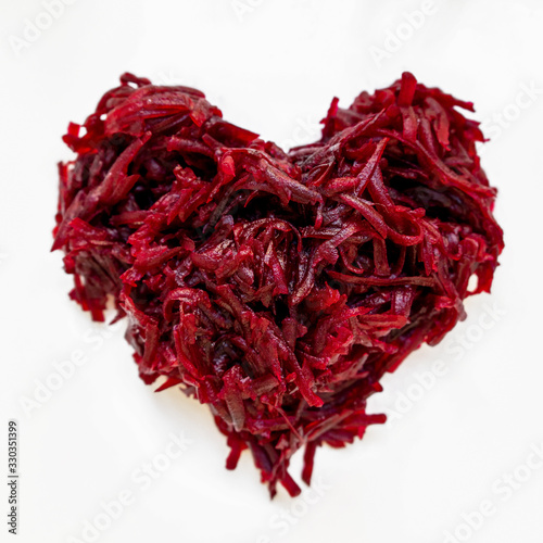Heart of grated beets. The concept of a healthy diet and the use of vegetables.
