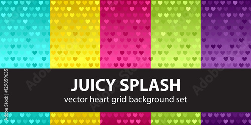 Heart pattern set "Juicy Splash". Vector seamless backgrounds