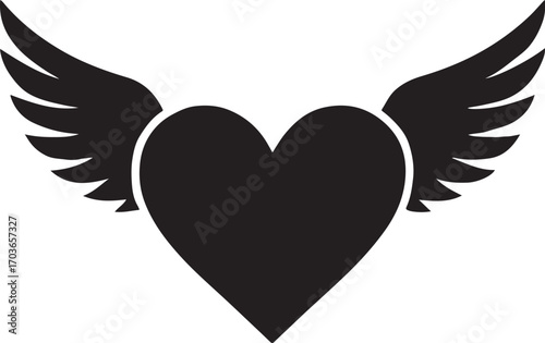 Heart silhouette with angel wings, symbolizing love, freedom, protection, spirituality, and romance.
