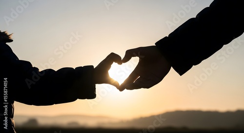Heartfelt Connection Silhouette of Hands Forming a Heart Shape at Sunset, Symbolizing Love, Unity, and Connection in Nature's Serene Glow