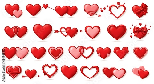 love, nubes, heart, red, pink, couple, arrow, bow, ribbon, valentine, romance, affection, passion, design, illustration, graphic, symbol, set, collection, vector