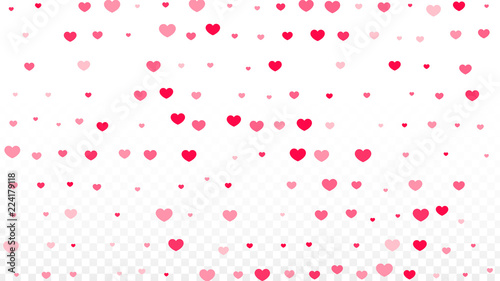 Hearts Confetti Falling Background. St. Valentine's Day pattern. Romantic Scattered Hearts Design Element. Love. Sweet Moment. Gift. Cute Element of Design for Sales or Celebration.