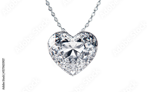 Heart-shaped diamond pendant necklace showcasing luxury design and exquisite craftsmanship for elegant style isolated on transparent background PNG