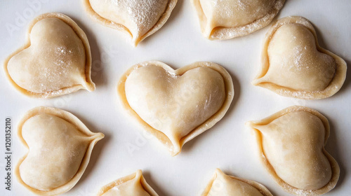 Heart-shaped dumplings on a white background