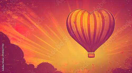 heart-shaped hot air balloon in a pink sunrise sky: perfect poster for romantic spaces or inspirational decor in your home or office