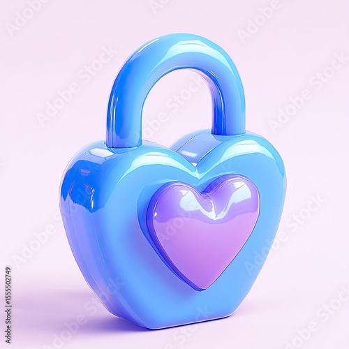 Heart-shaped lock, studio shot, pastel backdrop. Digital image, possible use for children's products