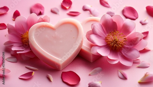 Heartshaped Oragnic Soapbars With Pink Flowers And Petals Spa And Selfcare Product For Aroma Therapy Ai Generated