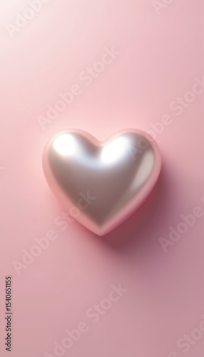 Heart-shaped pearl isolated against pink background. Romantic, elegant symbol of love, perfect for Valentine Day. Pearl jewelry, minimalist design, dreamy effect, ideal for romantic designs emotional