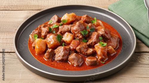 beef stew, stew, food, cookery, dish, meal, dinner, receipe, cooking, food photography, culinary, savoury, delicious, tasty, brown, red, dark, potato, meat, beef, vegetable, gravy, sauce, seasoning, spice, herb, parsley, plate, table, topview, closeup, home cooking, comfort food, warm, hearty, rich, flavorful, gastronomy, culinary arts, photo, image