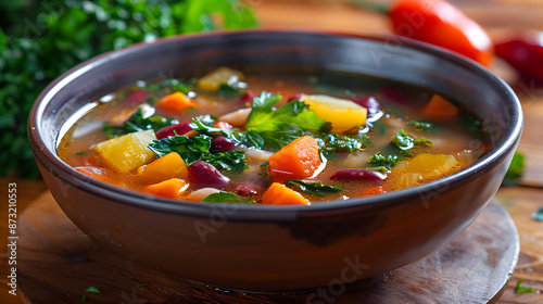 Hearty Homemade Vegetable Bean Soup in Rustic Setting