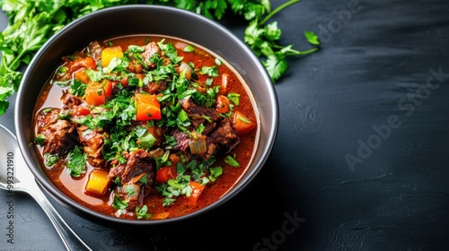 stew, vegetable, meat, bowl, cilantro, soup, meal, comfort, fresh, colourful, hearty, healthy, dinner, kitchen, homemade, broth, nourishment, epicure, receipe, ingredient, cookery, aromatic, rustic, tasty, mixing, spice, cooking, dish, favor, serving, presentation, green, orange, garnishing, spoon, pot, vegetarian, comfort food, lunchtime, culinary, satisfying, rich, warm, seasonal, organic, fresh produce