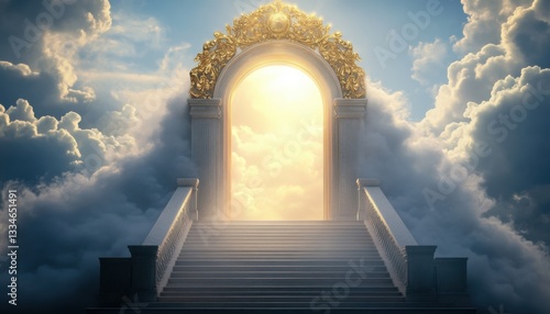 gate, cloud, perspective, opening, surreal, spiritual, sky, wonder, mystical, serenity, aethereal, calmness, celestial, mystery, hope, escape, moment, forever, vision, imagination, heaven, peace, inspiration, exploration, paradise, atmosphere, dream, fantasy, glow, divine, creativity, path, bliss, life events, scene, nirvana, whimsical, sight, artistry, ascend, enigma, portal, stair, light, beauty, nature