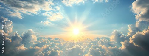 serene, sky, sun, peak, radiating, light, cloud, cumulus, nature, beauty, day, simplicity, daylight, harmony, weather, blue, bright, atmosphere, peaceful, sunlight, tranquil, skyline, clear, natural, generative, ai, sunset, cloud, sunrise, cloudscape, heaven, summer, orange, abstract, landscape, dusk, evening, air, beautiful, white, colours