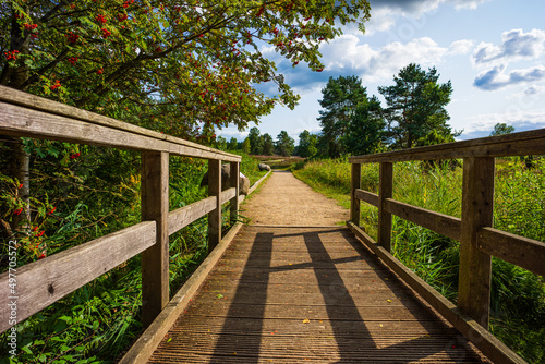 Heidschnuckenweg durch die Heidefläche am Angelbecksteich