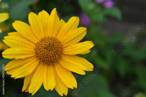 Heliopsis helianthoides. Perennial. Similar to the daisy. Tall flowers. Flowers are yellow. Close-up. On blurred background. It's sunny. Garden. Flowerbed. Floriculture. Horizontal