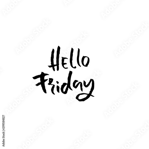 Hello friday. Modern dry brush lettering. Inspirational quote. Calligraphy card. Typography poster. Vector illustration.