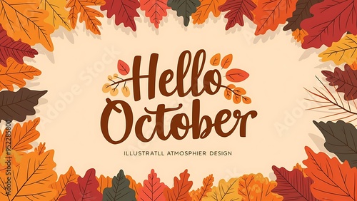 Hello october lettering with leaves frame background