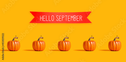 hallo, september, autumn, pumpkin, pumpkin, squashes, fall, season, month, hi, happy, day, holiday, message, event, text, word, thank, greeting, harvest, celebration, grateful, nobody, seasonal, orange, minimalism, minimal, simplicity, simple, design, pattern, repeating, abstract, many, red, yellow, background, banner, card