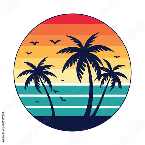 hello summer t-shirt design with palm tree vector illustration Beach t-shirt Design
