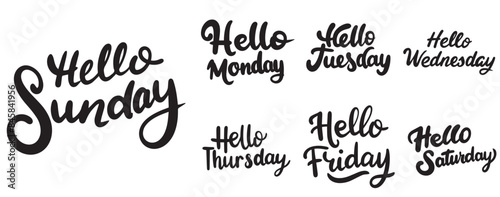 Hello Sunday, Hello Monday text lettering. Hand drawn vector art.
