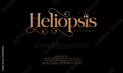 Helopsis premium luxury elegant alphabet letters and numbers. Vintage wedding typography classic serif font decorative vintage retro. creative vector illustration