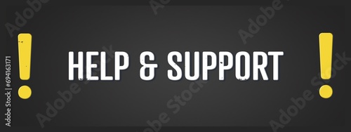 Help & support. A blackboard with white text. Illustration with grunge text style.