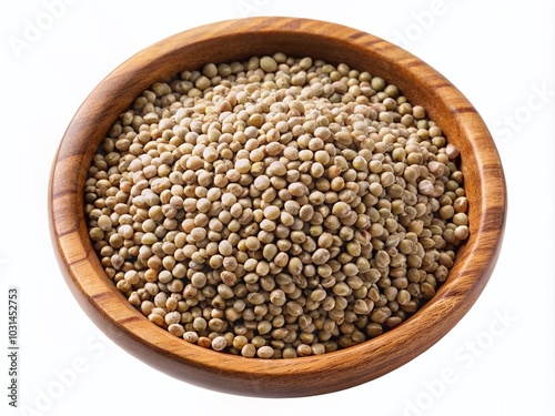 Hemp Seeds in Wooden Bowl - Aerial Photography for Healthy Eating and Nutrition