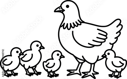Hen and Chicks: Simple Line Art Illustration, Motherly, Protective Mood