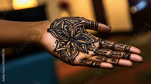 Henna art celebration cultural event hand design indoor setting close-up view intricate patterns for festivities