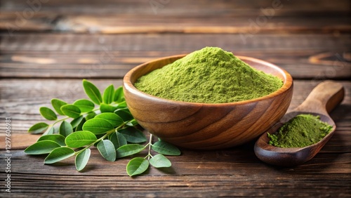 Herbal remedy in a wooden bowl with moringa leaf powder