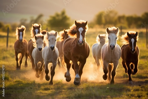 domestic animals, equestrianism, agriculture, herbivorous, pack animal, photograph, landscape, farm animal, panoramic, adorable, lighting, outdoors, fast horse, wildlife, grazing, pasture, running, through, animal, mammal, motion, nature, brown, field, grass, horse, plain, image, photo, dust, foal, herd, land, mane, mare, day, natural
