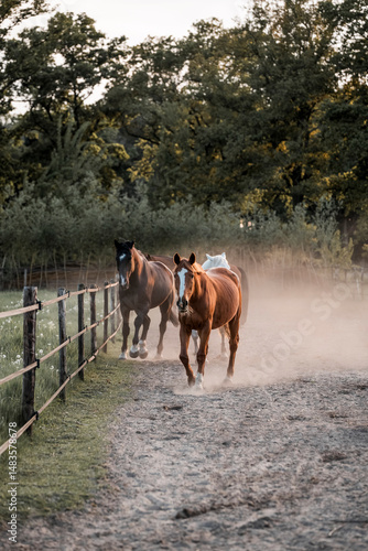 herd of horses in track system paddock paradise pretty living natural
