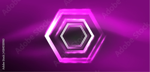 Hexagon abstract background. Techno glowing neon hexagon shapes vector illustration for wallpaper, banner, background, landing page, wall art, invitation, prints, posters