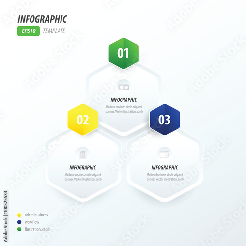 Hexagon infographic green, blue, yellow